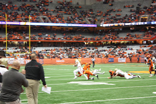 Syracuse, N.Y - The Syracuse Orange defeated the Boston College Eagles 20-17 in the season finale Saturday afternoon on a last-second field goal by Cole Murphy. Seventeen seniors were honored before the game. The Orange finished the season with a 4-8 record, and will look for a new head coach this off-season. Players carried fired Coach Scott Shafer on their shoulders following the win. Here is the game in pictures by Yonah Perline. Click on any photo to start slide show.